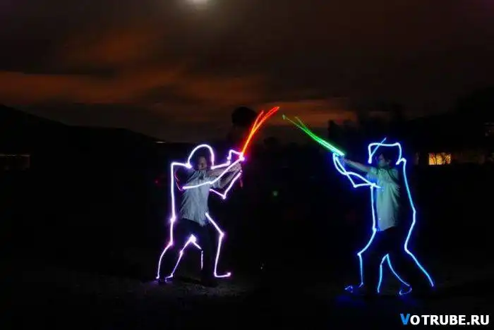фотать на длинной выдержке-трудно-малейшие движение-размытость(видно на 16 мужик просто помахал))) причем иногда рисующий остается в кадре"тенью". Обычно фотошопом подтирают ))) Ну и конечно различные балансы правят-шумы сильные на длинной выдержке...