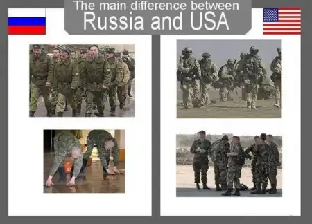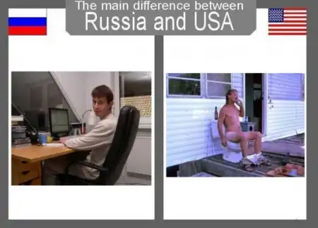 во-первых, там есть и экземпляры, где Россия выглядит куда привлекательнее США, во-вторых, фотки типа той, что с нашим глонассом или с оснащением наших срочников весьма объективны.. а поцреоты уже разорались, будто им на яйца наступили ;(