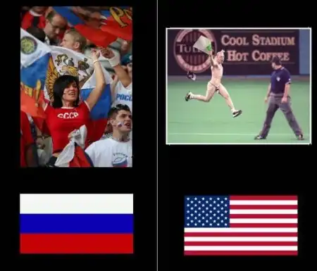 , просто такое впечатление от поста потому что автор немного неправильный порядок фотографий выбрал вот и все. Остаточное впечатление остается от того что фотки в пользу США все в хвосте. А посчитай ка сколько + и сколько - а? И у России и У США одинаковое количество:)) И наши + радуют больше:))