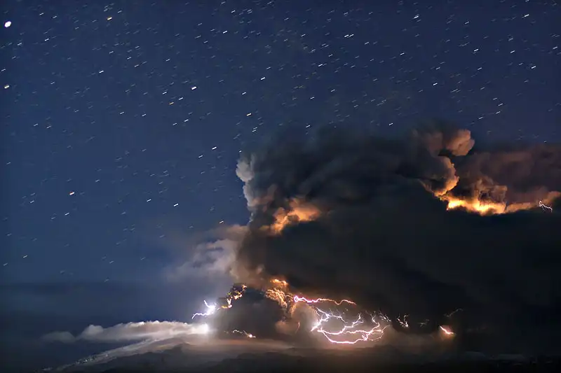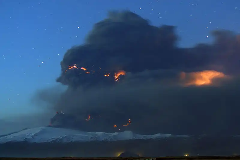 Новые фотографии извержения вулкана Эйяфьятлайокудль в Исландии.