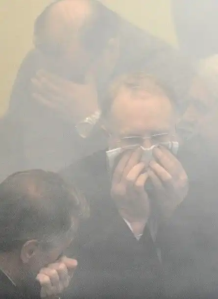 Затем, использовав дымовые шашки в качестве дымовой завесы, авангард оппозиции ринулся в рукопашный бой.