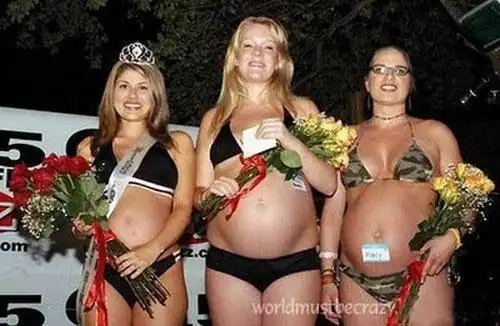 Участницы выступают исключительно в бикини, чтобы не стеснять будущих малышей