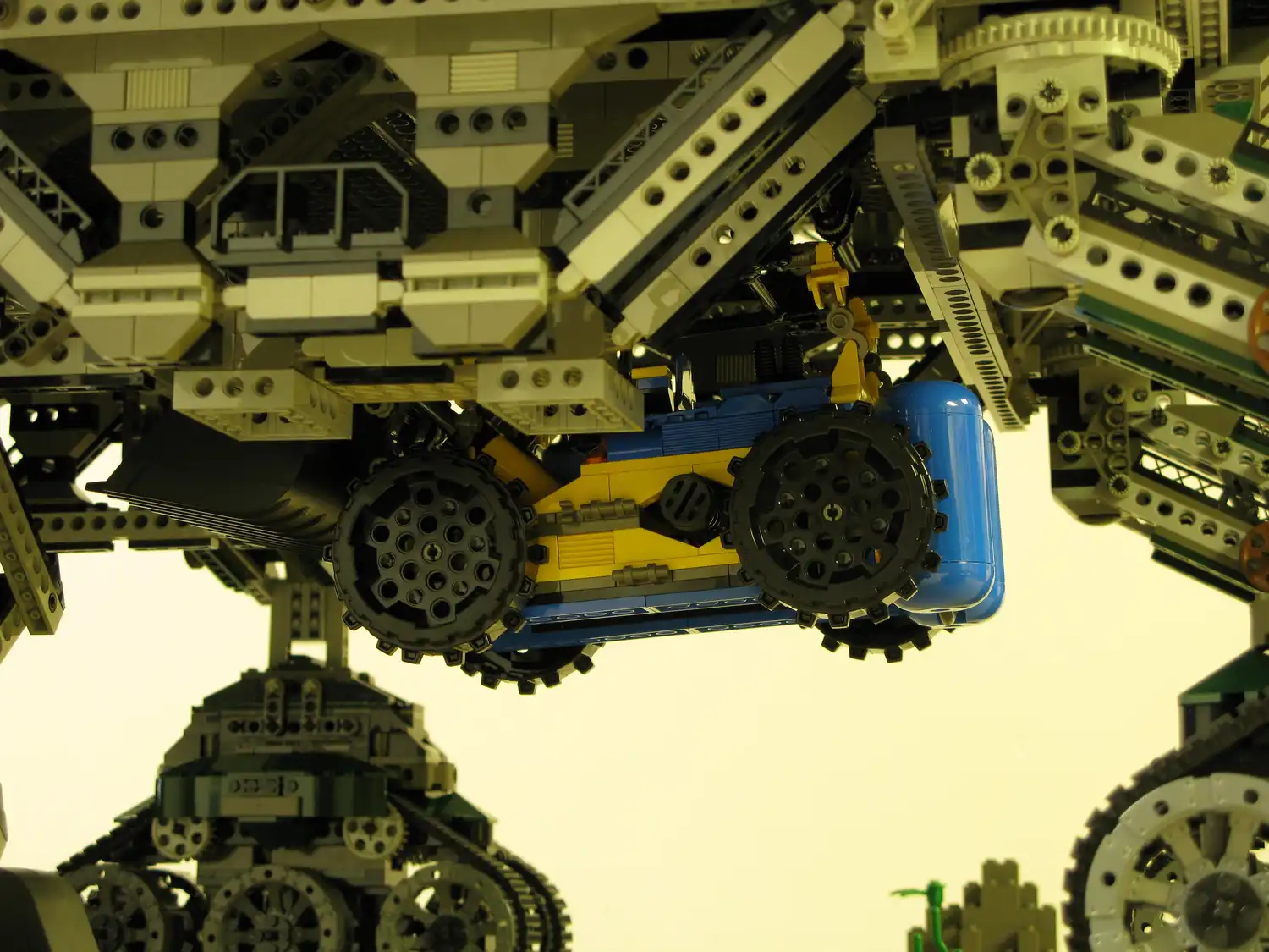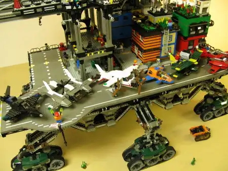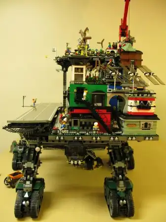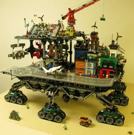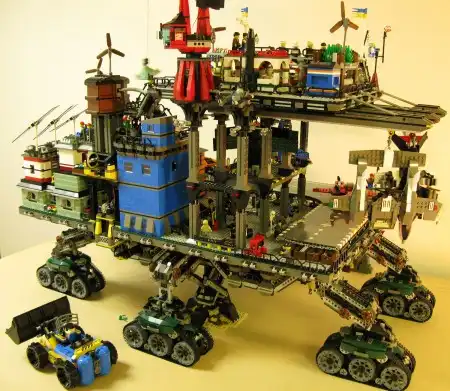 Известно, что технические конструкторы вроде всем известного Lego развивают фантазию и воображение. Удивляет порой лишь то, куда эта фантазия заводит. Один из фанатов создания новой реальности из кубиков выложил в сети фото своего антиутопического мегапроекта под названием "Ползучий город" (Crawler City).
