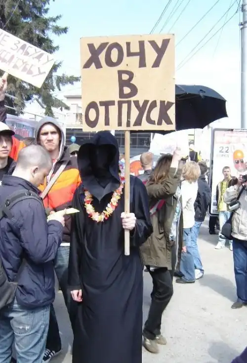 Молодежь собирается в центре города с забавными, иногда бессмысленными плакатами.
