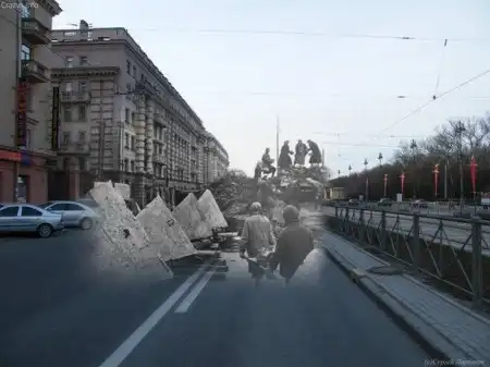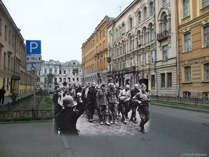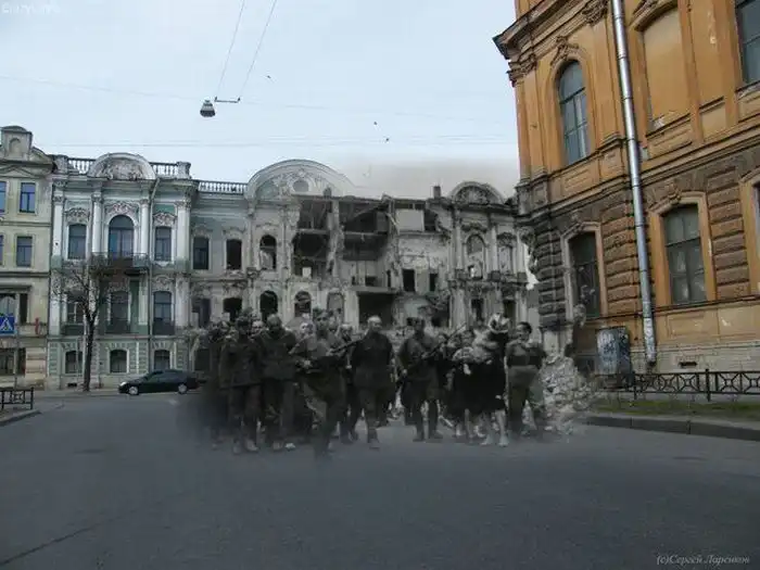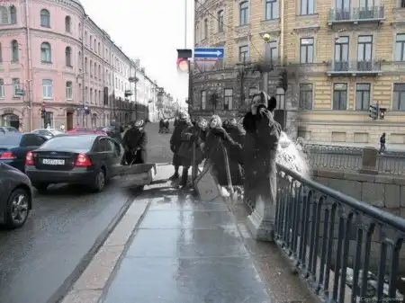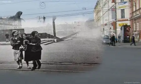 Автор этой идеи проделал огромную работу, соединив фотографии блокадного Ленинграда с фотографиями современного Питера.Мне больше нечего добавить. Это надо видеть.