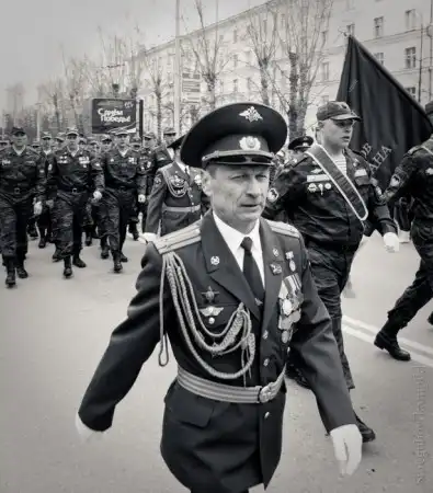 Демобилизовался из Берлина в августе 45го (у него довольно серьезная контузия, до сих пор иногда "специфически" заикается). Командование наградило его велосипедом (который он радостно пропил с мужиками прямо из эшелона в районе Польши) и трофейным фотоаппаратом.