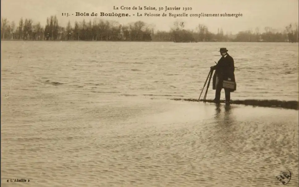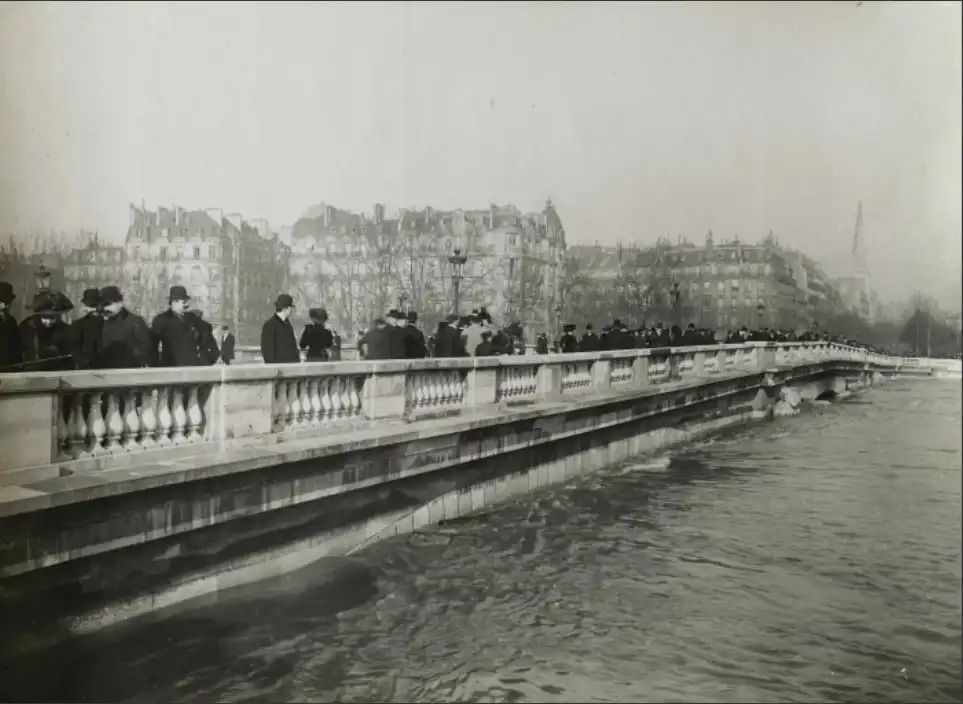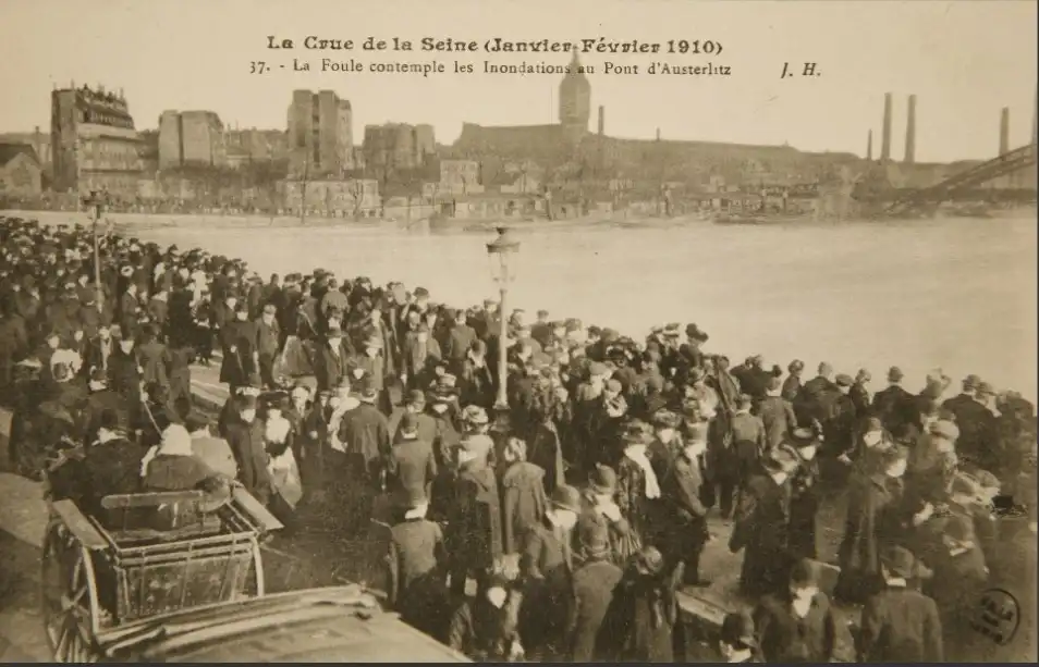 Парижане решили отметить столетие великого наводнения 1910 года. И собрали все открытки и фотографии того января. В 1910 году паводки на Марне, притоке Сены и на самой Сене привели к тому, что значительная часть прекрасного города была затоплена. Под водой оказались площади и улицы, вокзалы и дороги, станции метрополитена. Погибло несколько десятков человек, городу был причинен значительный материальный ущерб. Шестьдесят лет спустя после наводнения в 1910 году, в феврале 1970 года, потоп вновь обрушился на столицу Франции. Сена вышла из берегов, затопив не только парижские улицы и набережные, но и город Вильнев-Сен-Жорж, находящийся в 40 км от Парижа.