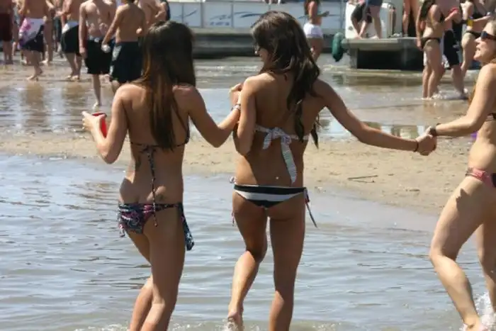 На одном озере каждый год собираются молодые люди и устраивают полуголую встречу лета.