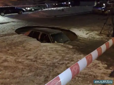Водитель, должно быть, удивился, когда прямо под его машиной образовался провал.