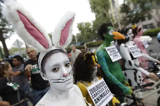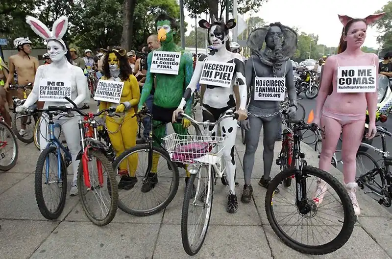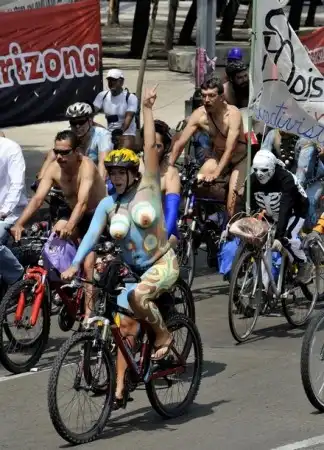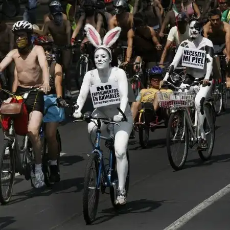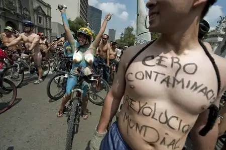 В минувшие выходные в Мехико "зелёные" велосипедисты устроили акцию протеста против проведения различных опытов на животных, проведя заезд по центральной части мексиканской столицы. А чтобы привлечь к себе внимание общественности и СМИ протестующие разделись. Это – один из множества “голых заездов”, которые ежегодно проходят по всему миру.