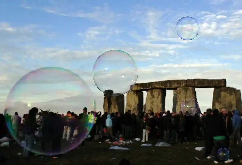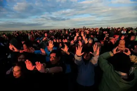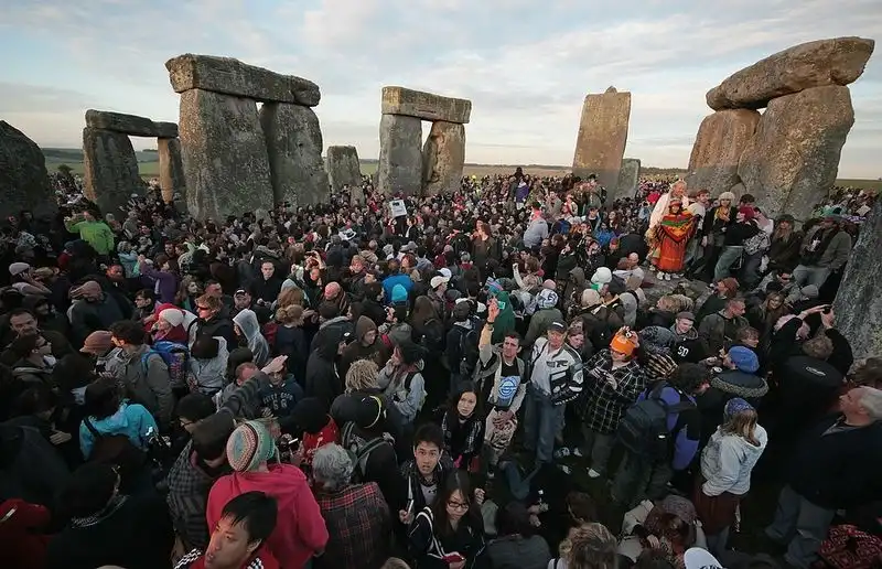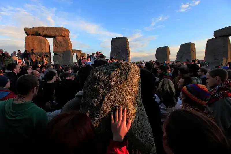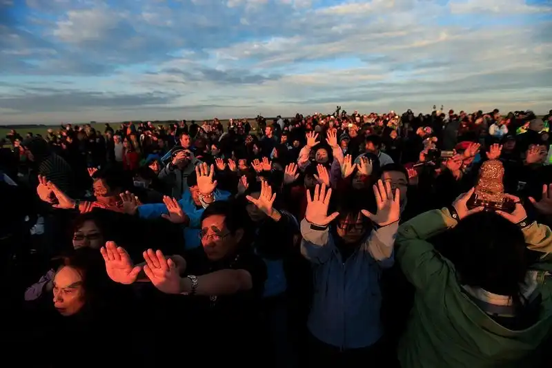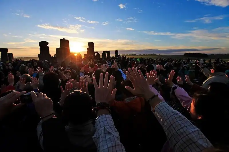 Как сообщает Би-би-си, посмотреть на восход солнца пришли хиппи, солнцепоклонники, неоязычники и просто любители древности.Они веселились и танцевали всю ночь, а затем встретили рассвет, подняв руки к небу.