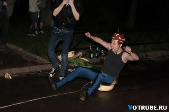 Где-то валялась похожая тема, там ещё фотки, где из под тазика искры летят и у чувака все джинсы на ..опе протерты, даже до крови вроде...