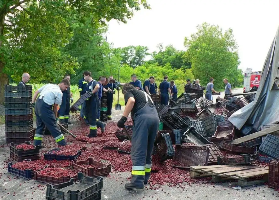 и на нашей улице праздник:) перевернулся грузовик с черешней:))))
