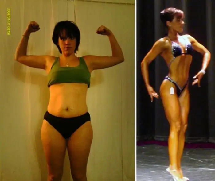 девушкам не идет быть через-чур обкаченными, по-моему лучше худеть и подтягивать тело, занятиями спортом естественно. но не увлекаться бодибилдингом. мужчины тоже перебарщивают. но им намного больше идут кубики на животе, чем женщинам :)