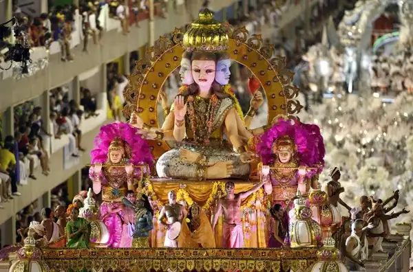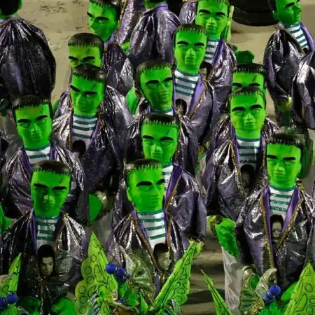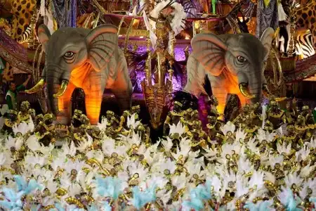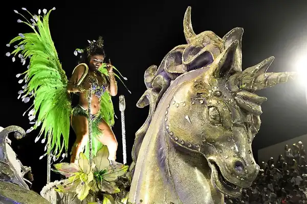 В ходе своей программы танцоры самбы изображали магов-алхимиков, американских гангстеров 1920-х годов, персонажа комиксов про Бэтмена и покойного «короля поп-музыки» Майкла Джексона (Michael Jackson). В танце были также «рассказаны» легенды об Атлантиде, Троянском коне, Александрийской библиотеке, Висячих садах Семирамиды и царе Соломоне.