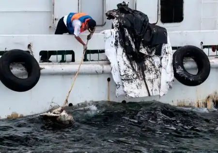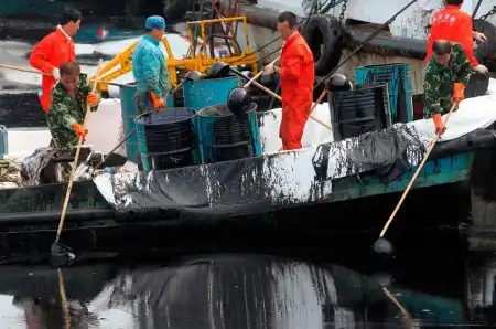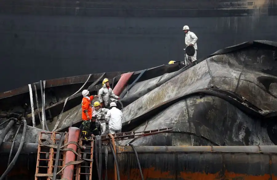 Поврежденный газопровод в порту города Dalian в Китае привел к сильному пожару и разливу нефти. Жуткие кадры экологического бедствия.