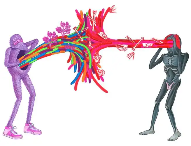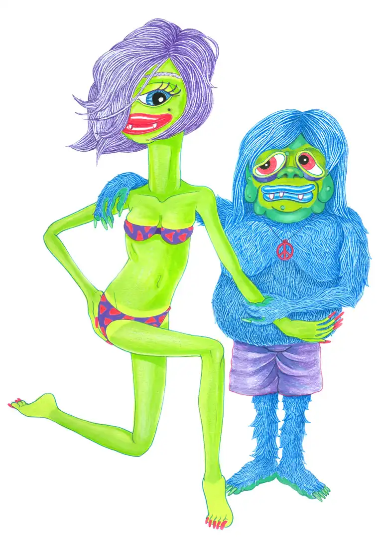 Много кислотных цветов, много секса и монстров. Из-за такого микса даже насилие в картинах Мэтта Фьюри, 28-летнего художника из Сан-Франциско, кажется позитивным и милым.