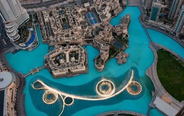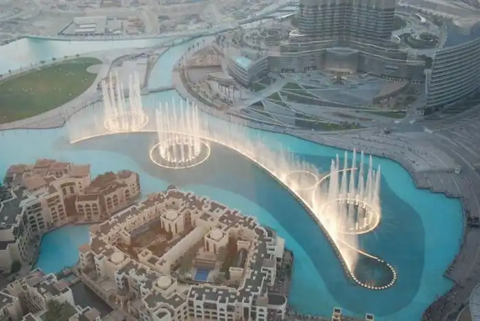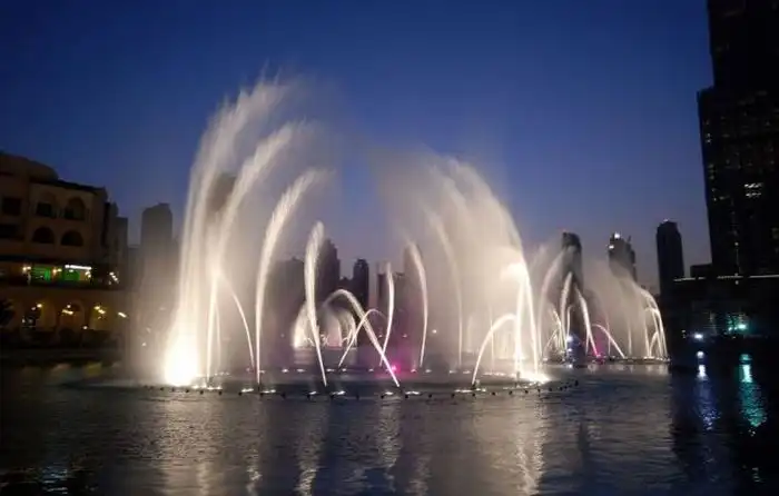 Фонтан Дубая находится в самой центральной части города. Он расположен на искусственном озере. Разработчик Борджи Дубая Эмаар