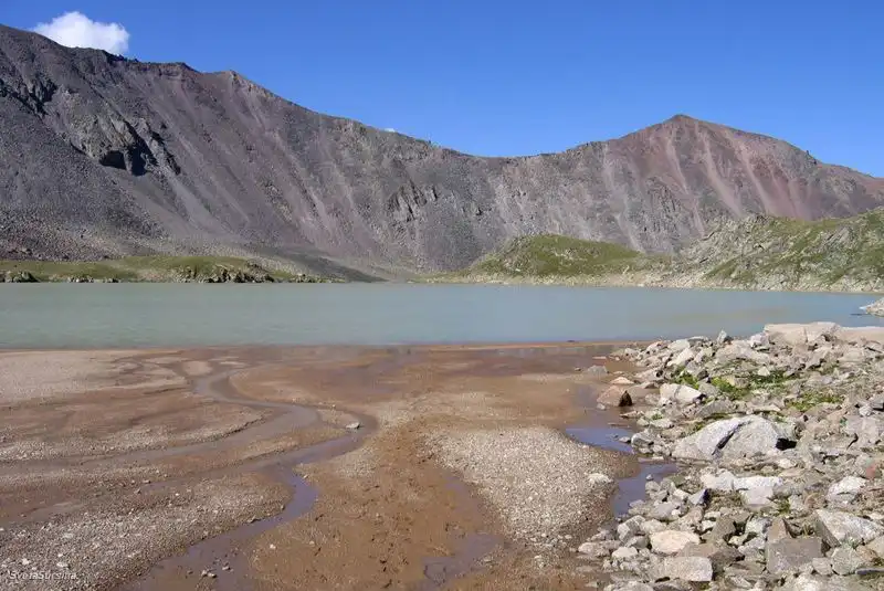 3. Август. Солнечно и жарко. И первый день в горах. Идти довольно тяжело. Привыкаем. Не спешим... До озера ходьбы от пяти до шести часов. Река справа. Выполаживание, решили переночевать, и утром ну нас, как романтично пишет один из очевидцев: