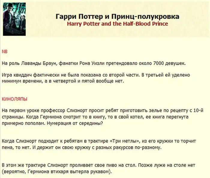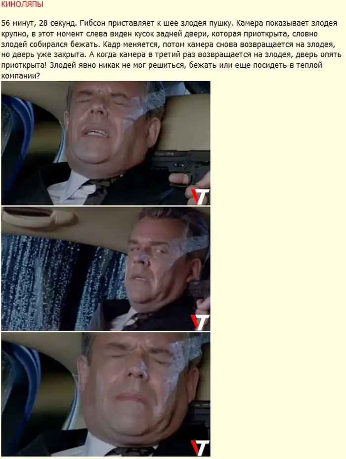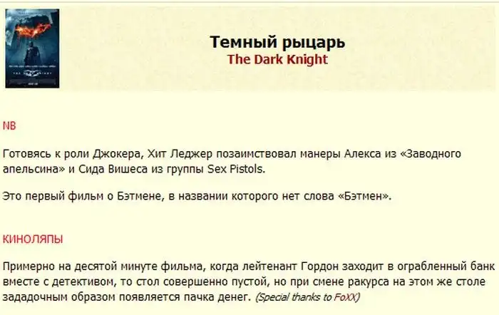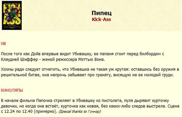 Ляпы ф фильмах: Врата в 3D, На игре, Гарри Поттер и Принц-полукровка, Загадочная история Бенджамина Баттона, Перевозчик 3, Тёмный рыцарь, Пипец, Бешеные псы, Луна 2112, Возмездие.