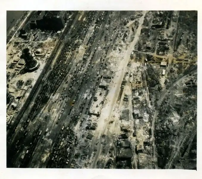 В начале второй атаки многие еще теснились в тоннелях и подвалах, ожидая конца пожаров. В 01.30 до слуха командира спасательного отряда, посланного в город с рискованной миссией, донесся зловещий грохот. Это был вой смерча, начавшегося в городе».