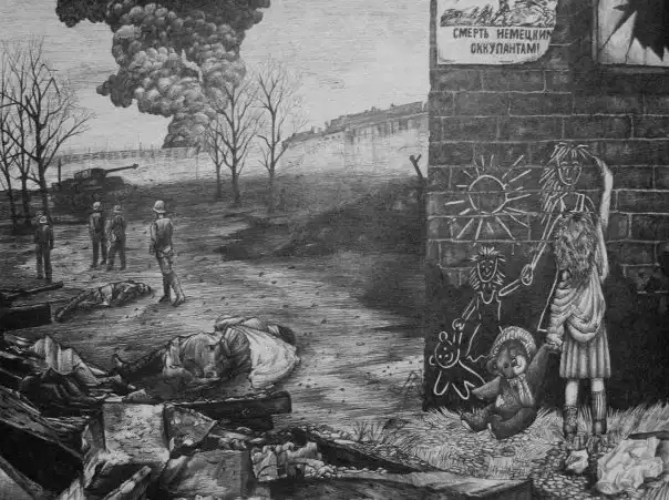 При разработке картинки был использован плакат В. Пинжука "Смерть немецким оккупантам" (1942).