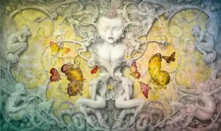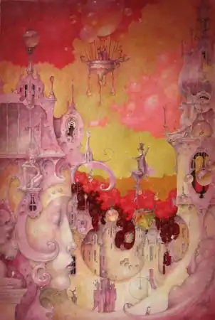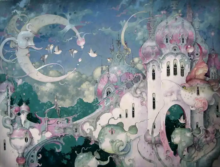 Картины Daniel Merriam - мечты в полном цвете, которые приглашают зрителя присоединиться к путешествию в воображение, где миры действительности и фантазии сталкиваются во взрыве цвета, форм и символики.