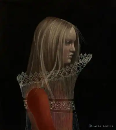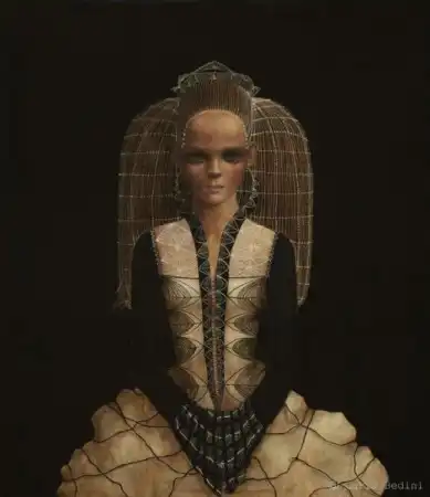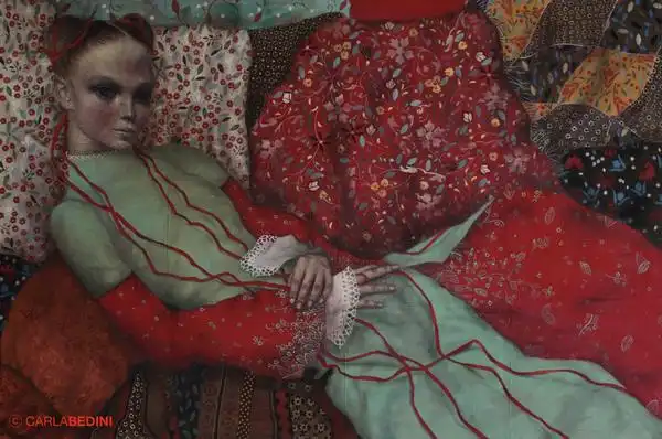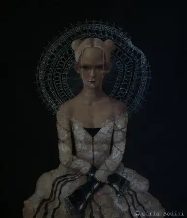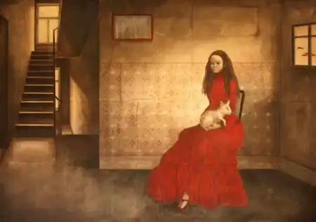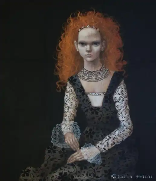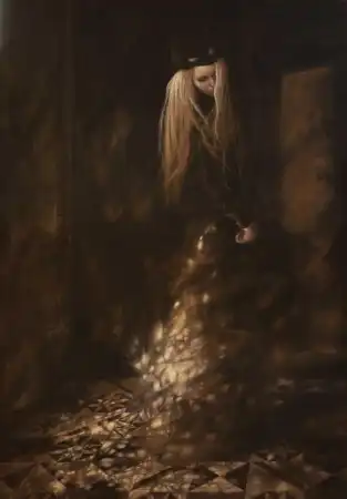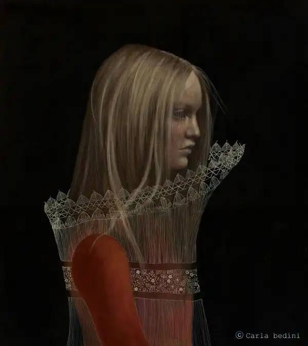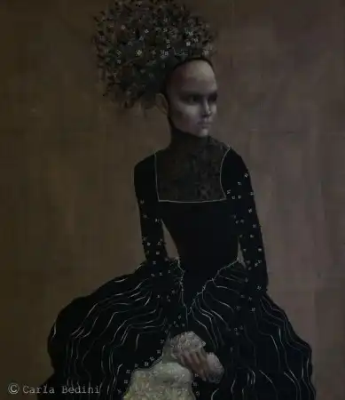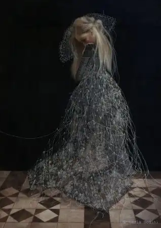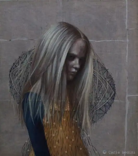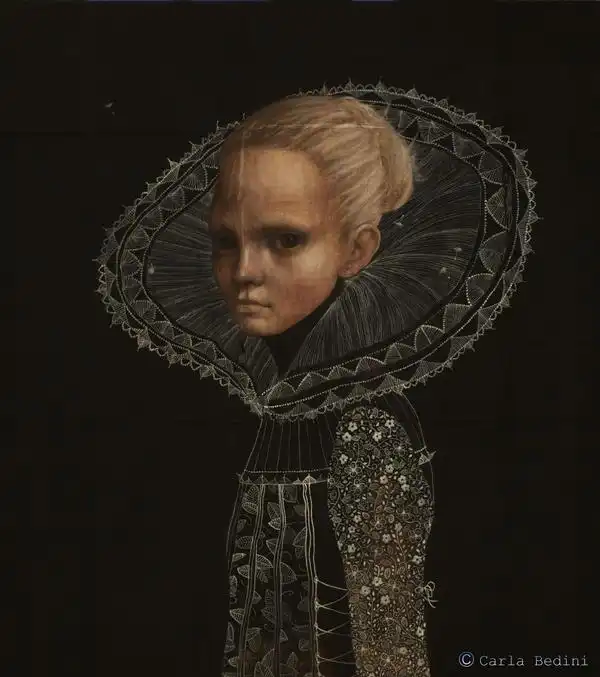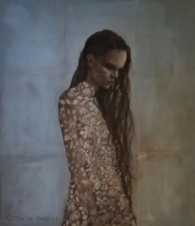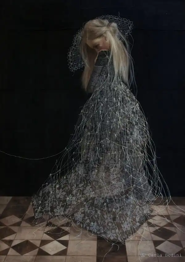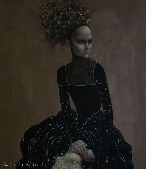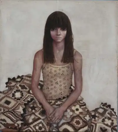 Её картины, созданные на обыкновенной медицинской марле, изображают странных болезненно-хрупких девочек. Анорексичные Офелии, всплывшие со дна, смотрят на мир неживыми глазами, пустыми и тёмными, как пузыри на болотной воде.