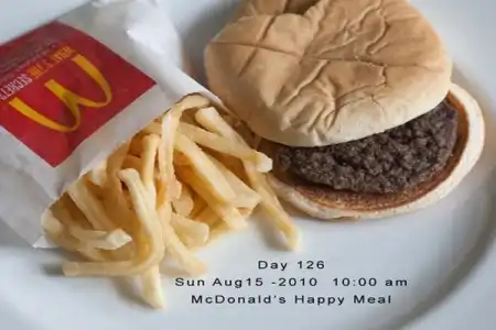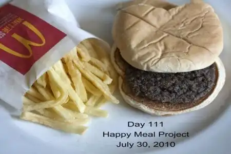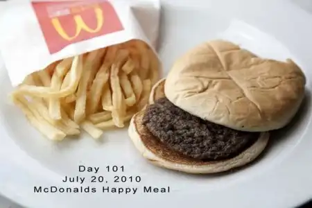 Фотограф из Нью-Йорка Сэлли Дэвис купила набор Хэппи Мил и начала каждый день фотографировать гамбургер и картофель фри.Уже прошло 137 дней, а еда практически не изменилась. Удивительно.
