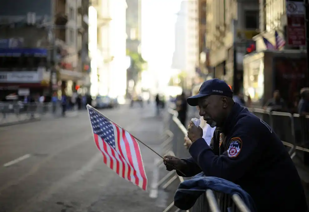Семьи погибших идут на церемонию поминовения в Нью-Йорке.