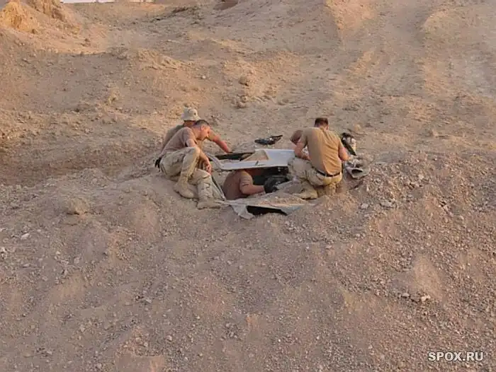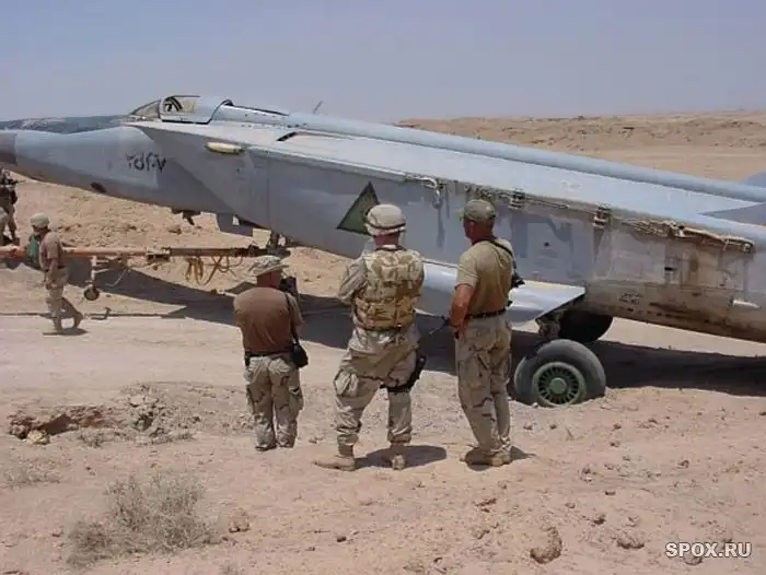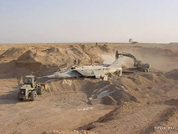 Истребитель иракский ВВС (МиГ-25) был спрятан в дюнах недалеко от аэропорта Аль Таккадума. Американские военные вырыли его после того, как осведомитель указал на место, где был зарыт самолет. Как сообщил осведомитель, подобным образом было спрятано около дюжины самолетов. Иракское командование планировало впоследствии их восстановить и вернуть в строй. Похороненные самолеты в Аль Таккадуме были покрыты камуфляжной сеткой, опечатаны, и в некоторых случаях без крыльев.