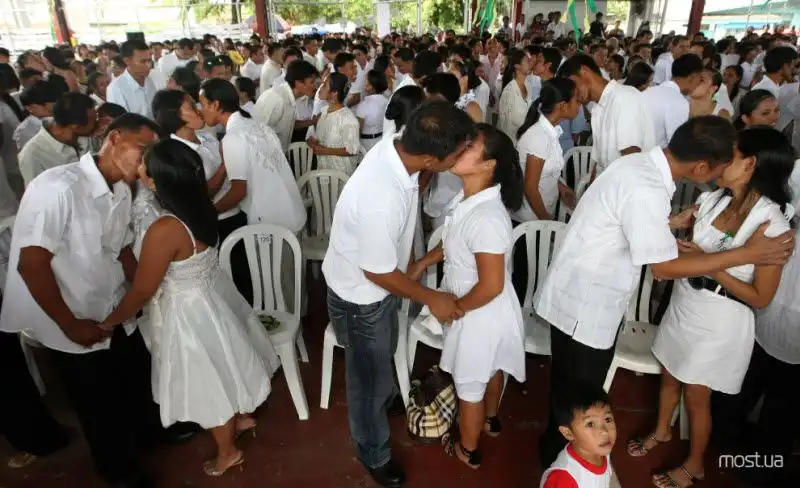 10-е число 10-го месяца 10-го года — эти цифры вызвали небывалый ажиотаж у влюбленных во всем мире. Во многих странах наплыв молодоженов даже превзошел дни «трех девяток», «трех восьмерок» и «трех семерок». В Южной Корее этот день отметили самой массовой в истории международной свадьбой. 7200 пар — влюблённые из разных стран — обвенчались в церкви Объединения в Сеуле. Церемонию провёл основатель церкви — 90-летний Мун Сон Мён. Стоя на пьедестале вместе с женой, он произнёс торжественную речь, пары обменялись кольцами, а потом около часа молились, взявшись за руки. Участники массовой свадьбы верят, что такая церемония бракосочетания укрепляет мир на планете. Первый подобный праздник состоялся 50 лет назад. Тогда в нём приняли участие всего 24 пары.