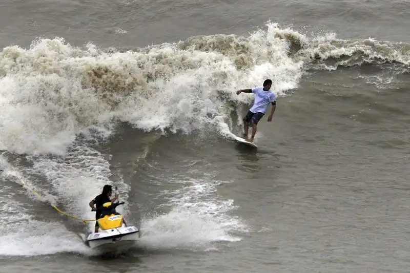 Обалденное зрелище, прилив с 8-ми метровыми волнами, как вам? Наверное очень страшно находится в этот момент на пирсе, мало ли, что может произойти.