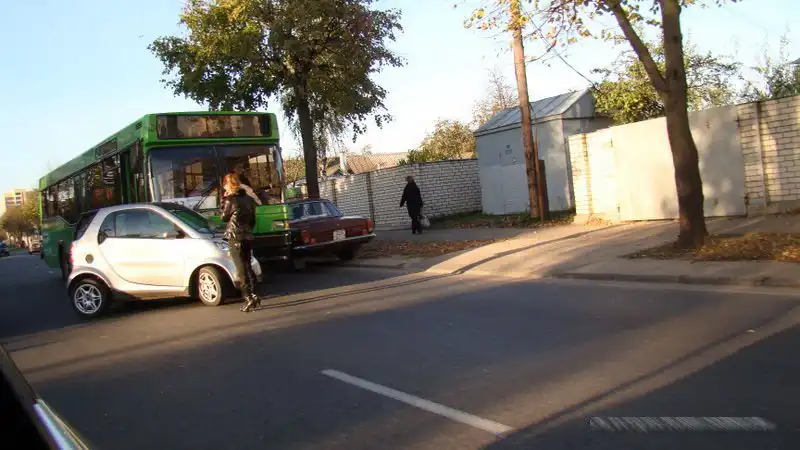 Девушка на Смарте паркуется