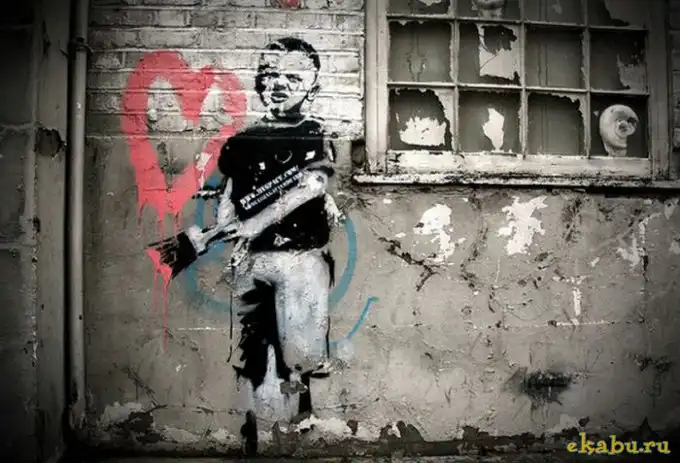По некоторым источникам Бэнкси родом из Бристоля. Ему 36 лет. Граффити Бэнкси увлекся примерно в конце 90-х годов. Длительное время он просто рисовал, но постепенно его работы становились все более масштабными. Благодаря этому Бэнкси быстро стал популярен в Бристоле и Лондоне. Со временем ему стало сложнее скрываться от полиции. И тогда он додумался рисовать с помощью трафаретов, чтобы ускорить процесс творчества, чтобы прорисовка каждого фрагмента не занимала слишком много времени. И это не раз спасало его от столкновения с полицией.