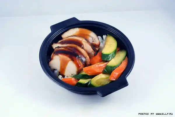 Цыпленок терияки на гриле еще один пример обеда в гавайском стиле на рейсах «Alaska Airlines». Ее стоимость - 6 долларов.