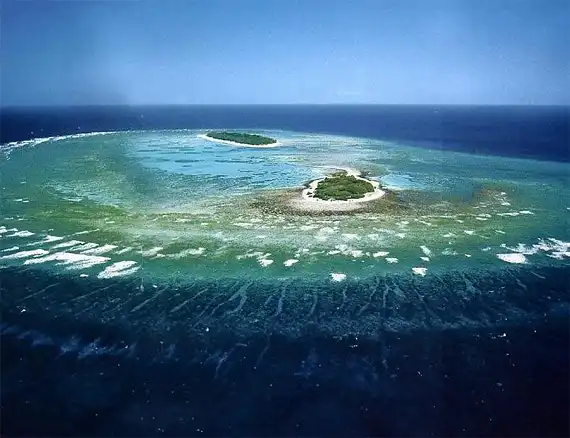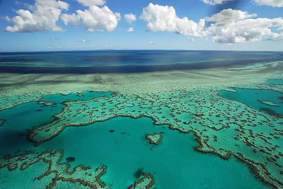 Большой Барьерный риф протянулся вдоль северо-восточного побережья Австралии на 2500 км. Это самая большая в мире экосистема со своим микроклиматом, нарушение которого может привести к исчезновению уникального памятника природы. Территория рифа охватывает около 2900 отдельных рифов, окруженных 540 барьерами, которые образуют прибрежные острова. Общая площадь Большого Барьерного рифа 348698 квадратных км.