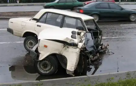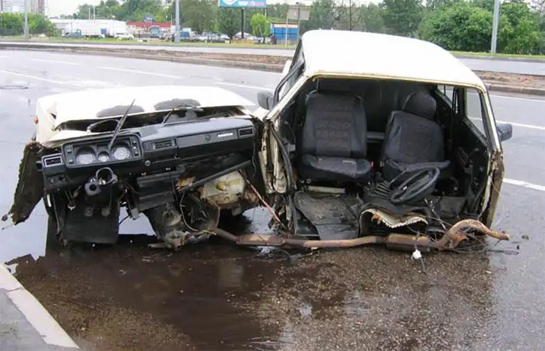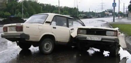 видно же след от удара в левое крыло, да и кардан с рулем просто так не оторвать...