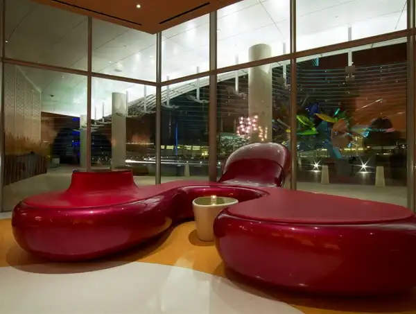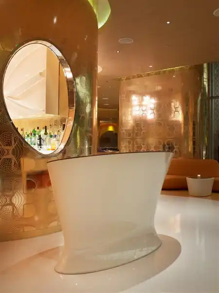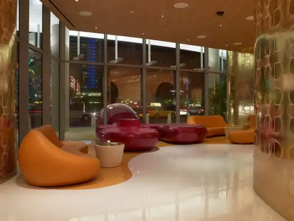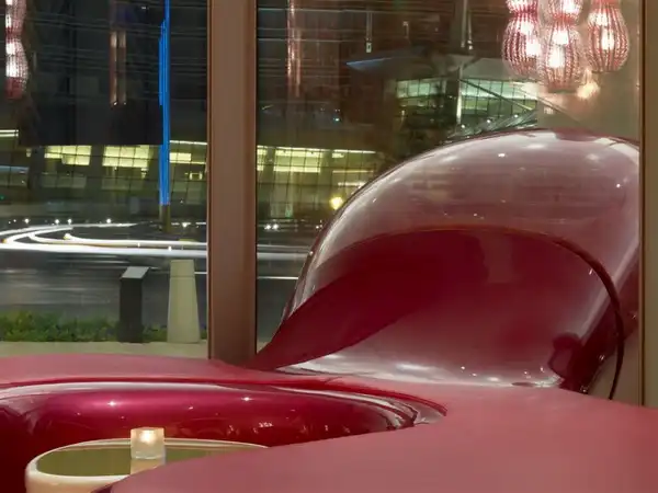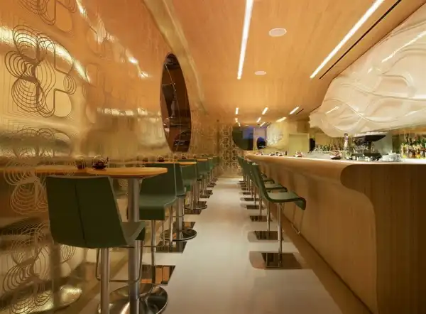 Франко-египетский дизайнер Карим Рашид (Karim Rashid) представил внутренне убранство нового ресторана "Шелковый путь" (Silk Road) в Vdara Hotel в Лас-Вегасе. Ресторан настолько большой, что в состоянии вместить 220 человек на площади более чем 8 700 m2. Интерьер далек от стиля "розовой конфетки", к которому Рашид имеет тягу, но линии все также объемны и изогнуты. Палитра цветов теплая - фиолетовый, оранжевый, красный и желтый.