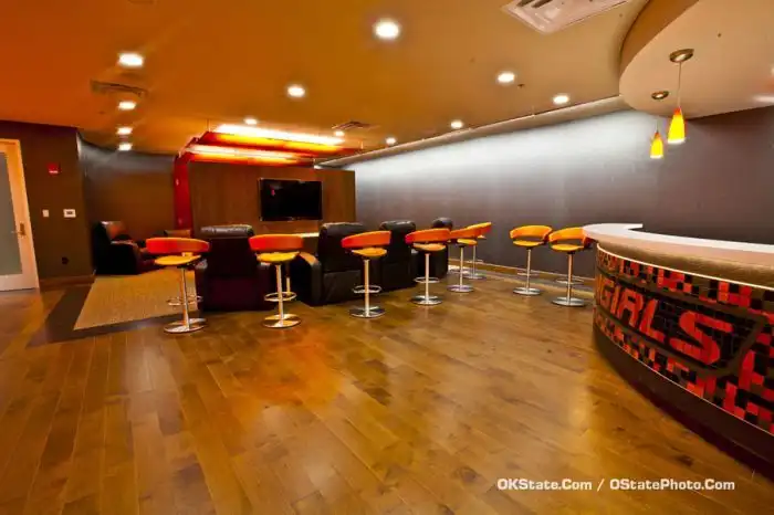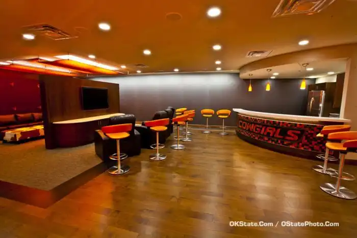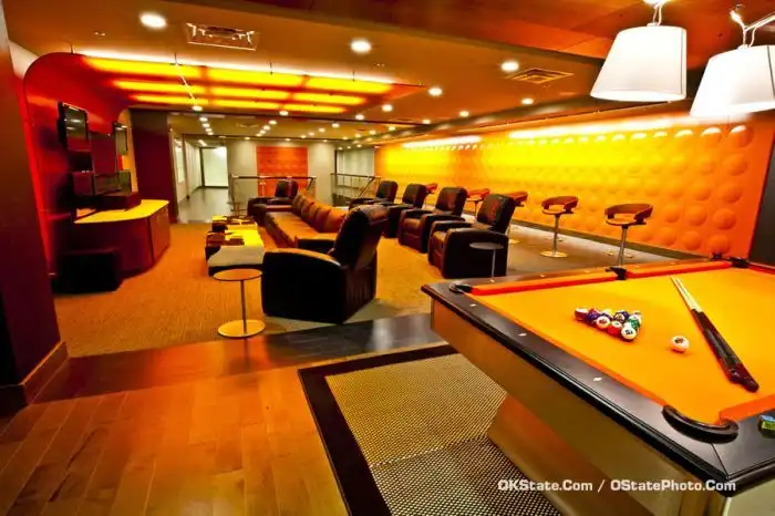 Все вы знаете, что американцы очень любят спорт, на баскетбольных матчах залы забиты до отказа, на соревнования среди университетских команд по американскому футболу собираются тысячи людей. Студенты живут на стипендию, играют бесплатно, рассчитывать на деньги спонсоров им просто запрещено. Игра в университетской команде является для студентов переходным периодом перед профессиональной лигой. Университеты предпринимают самые сумасшедшие вещи, для завлечения будущих звезд в свои команды. К примеру университет Оклахомы отстроил раздевалку стоимостью 4 миллиона долларов для своих баскетболистов. Каждому спортсмену выделяется комната с плоским телевизором и музыкальной системой. Общая раздевалка имеет вид холла дорогой гостиницы, мраморные полы, дорогое освещение, джакузи, бар, все это присутствует. Приятно учится в таких заведениях, вот бы у нас так было.
