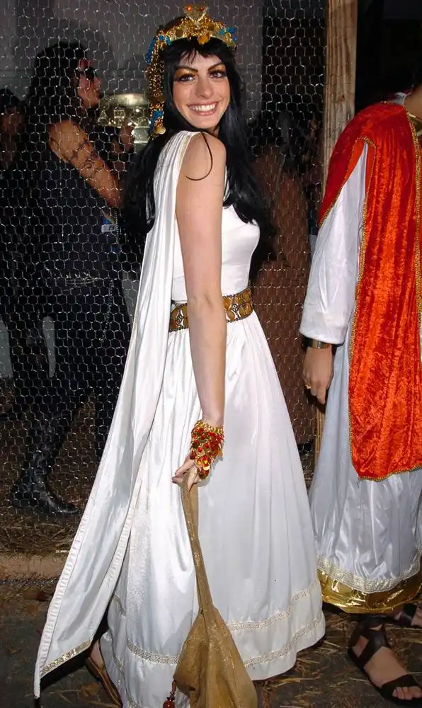 22. Энн Хэтэуэй была рождена, чтобы сыграть королеву (Нила). Гламурная актриса решила прибегнуть к этому классическому костюму на вечеринке Хэллоуина 2004 года в Нью-Йорке, которую устраивала Хайди Клум. (InStyle.com)