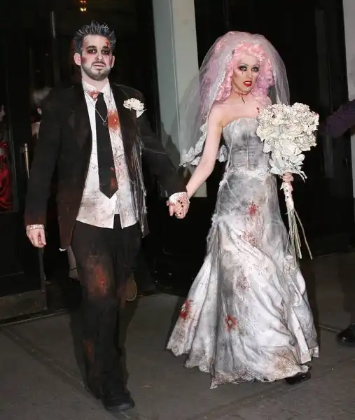 19. В 2006 году любители Хэллоуина Кристина Агилера и ее муж Джордан Братман явились на вечеринку в образе мрачных жениха и невесты. (InStyle.com)