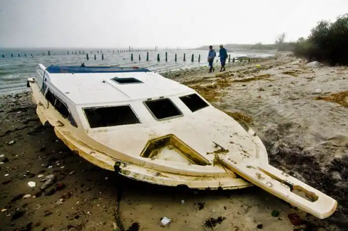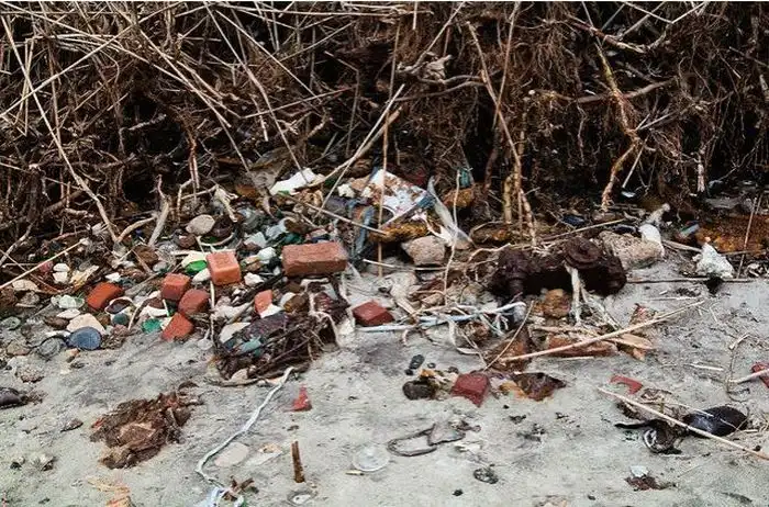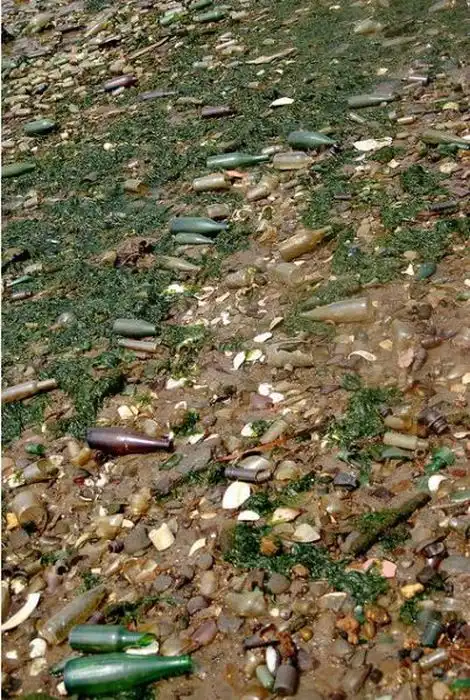 Тут прямо таки апокалипсис какой-то, а не пляж - кругом бутылки, пустота и разрушение.