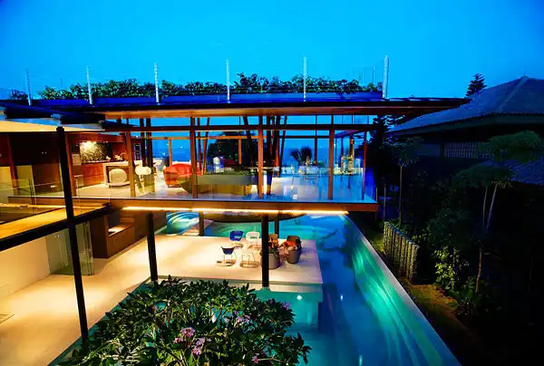 Fish House – это «современный тропический бунгало», который идеально интегрирован в климатические и природные условия данной местности. Естественная вентиляция, большое количества дневного света, стеклянные стены, вид на море, роскошный бассейн – все это стало возможным благодаря наличию красивейшей природы вокруг дома и спокойной атмосфере района в целом.