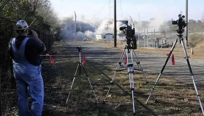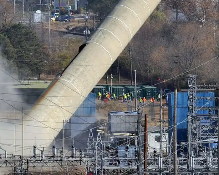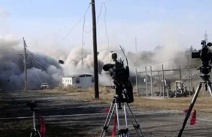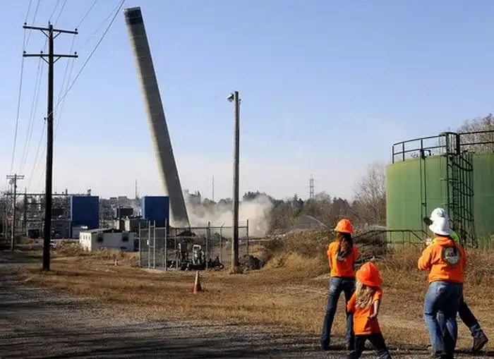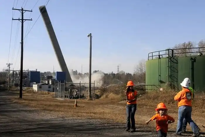 В городе Спрингфилд, штат Огайо, США, проводили обычный подрыв старой дымовой трубы электростанции.
