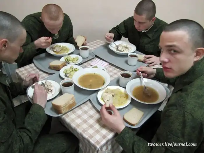 мда сразу видно кто не служил, сидят тут усираются что мол всё это показуха. каждой части кормят по разному. открываются гражданские столовые . ну конечно думаю сравнить армию 2000+ и армию 2010 как то ну ненормально или несуразно. А она ведь меняется как никак , потихонечку помаленечку.