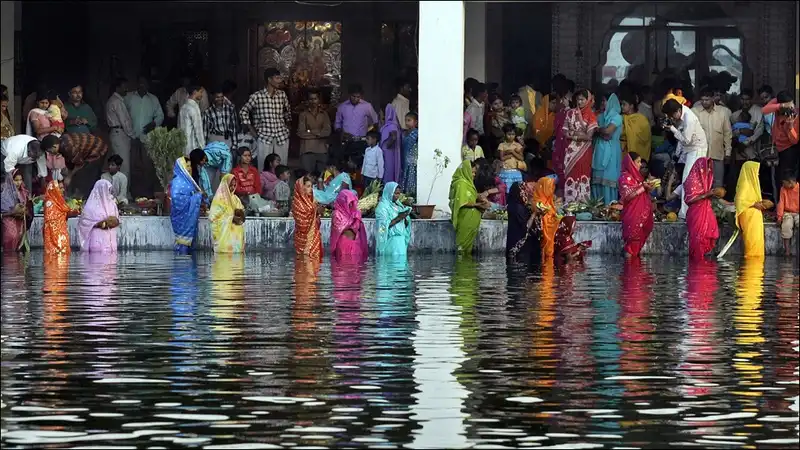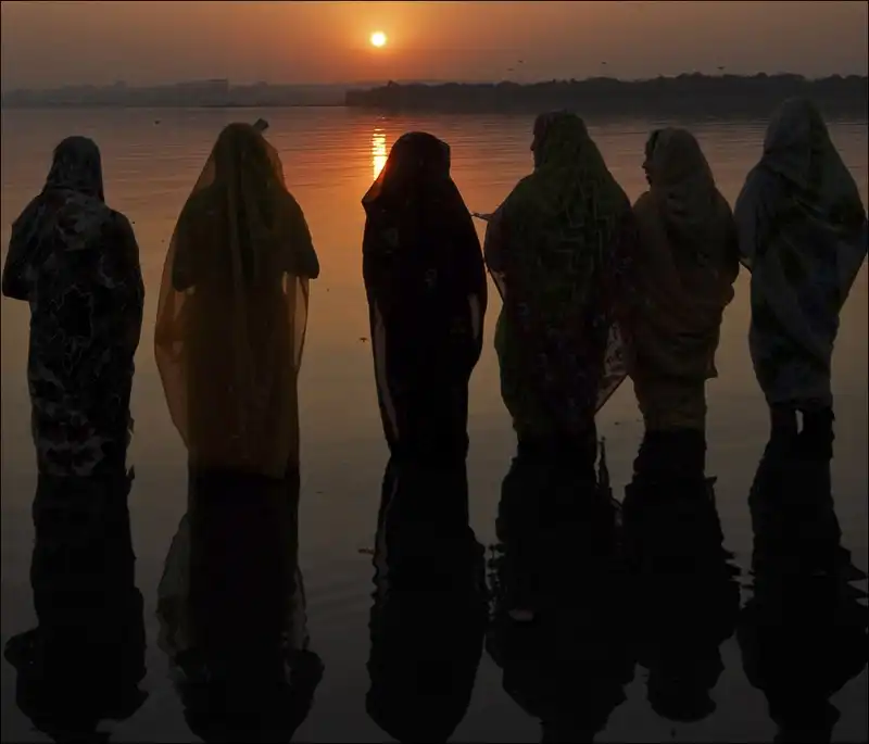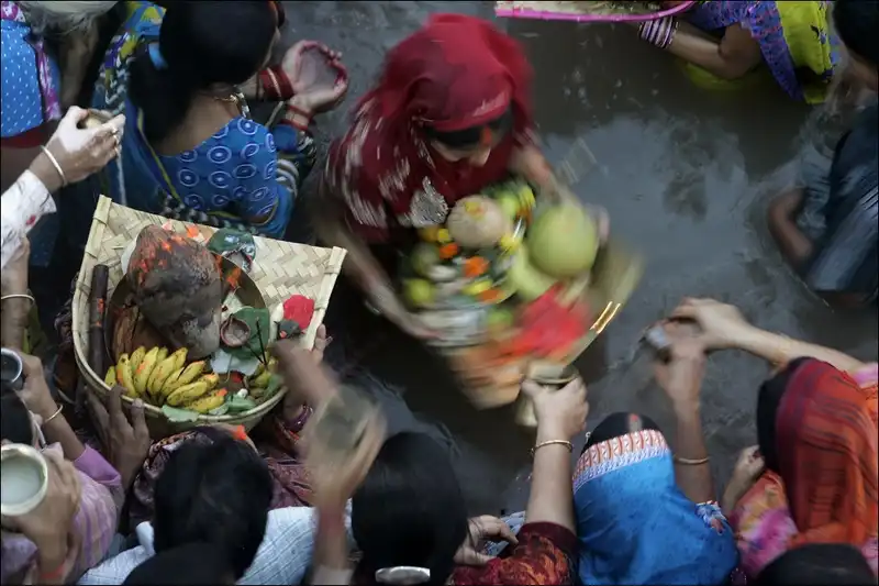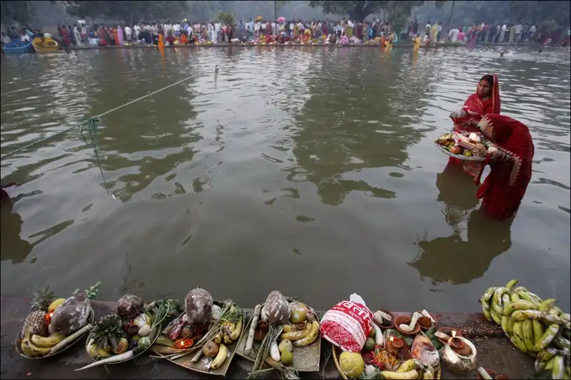 Красочные фотографии с празднований фестиваля Чхатх или Сурья Пуджа, который прошел в Индии на прошлой неделе. Во время фестиваля индусы поклоняются богу солнца и постятся весь день, чтобы обеспечить благополучие своей семьи и друзей. Сурья пуджу празднуют дважды в год – один раз летом (май-июль) Чаити Чхатх, и одни раз в октябре-ноябре – Картик Чхатх, который празднуют через шесть дней после фестиваля Дипавали. Первый день праздника начинается с ритуального купания (предпочтительно, в реке Ганг), а затем верующие воздерживаются от работы по дому и постятся в течение четырех дней.
