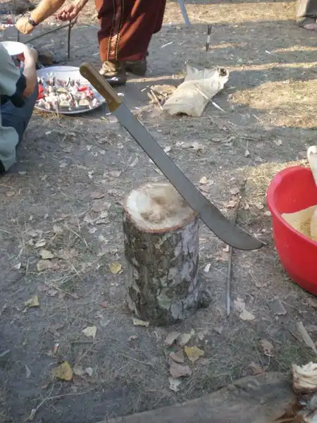 Вата ваши мачеты! толи дело японские катаны или испанские рапиры... вот там реально проявляется мастерство ковки. А тут, половина вообще кухонных ножей,а вторая половина обыкновенный рабочий инструмент, каким и является посути мачете (аналог топора) только тонкий с широким лезвием (для увеличения режушей силы как-бы)и утолшением на конце клинка для повышения веса и силы удара. Тотже топор. Ниочем.