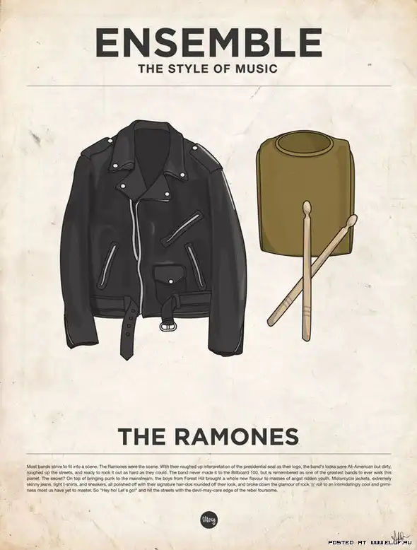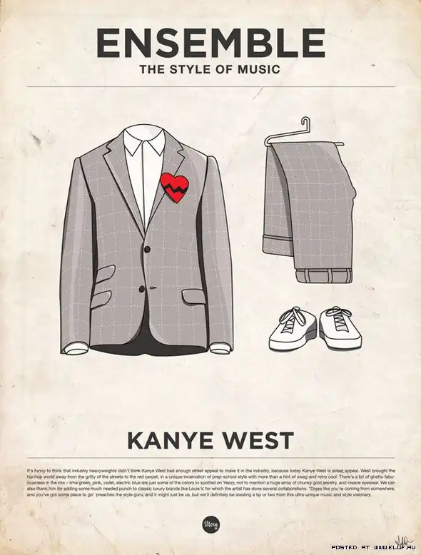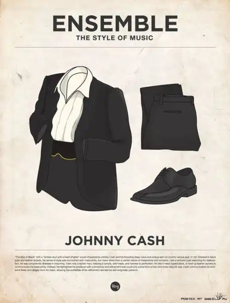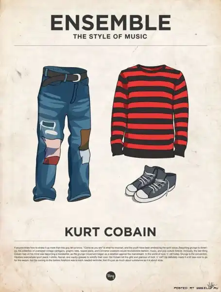 Дизайн студия Moxy Creative выпустила лимитированную серию плакатов с луками популярных музыкантов. Всего получилось 20 постеров, по 100 экземпляров каждого постера. Стоимость 1 штуки - 30 долларов + доставка.