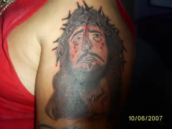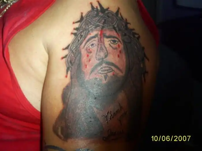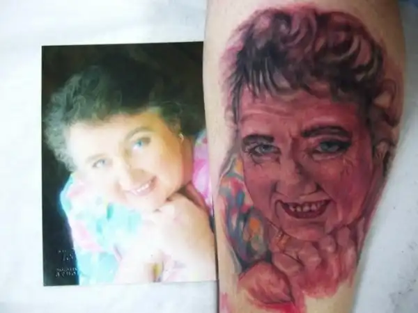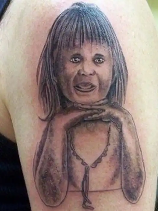 тетка с отвисшей грудью и все тату с "лицами" - это, блин, копец